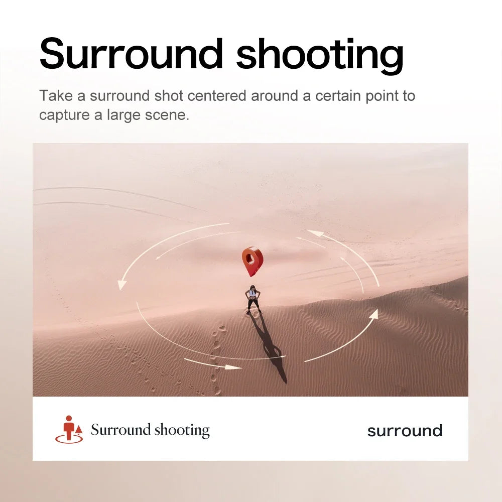 Custom flight path, gesture control, palm takeoff, follow-me mode, orbit mode, headless mode, and more.